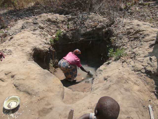 Many people in villages have no water close by. They often have to walk a long way to a stream or even a dirty puddle to collect water. They they carry it home on their heads.